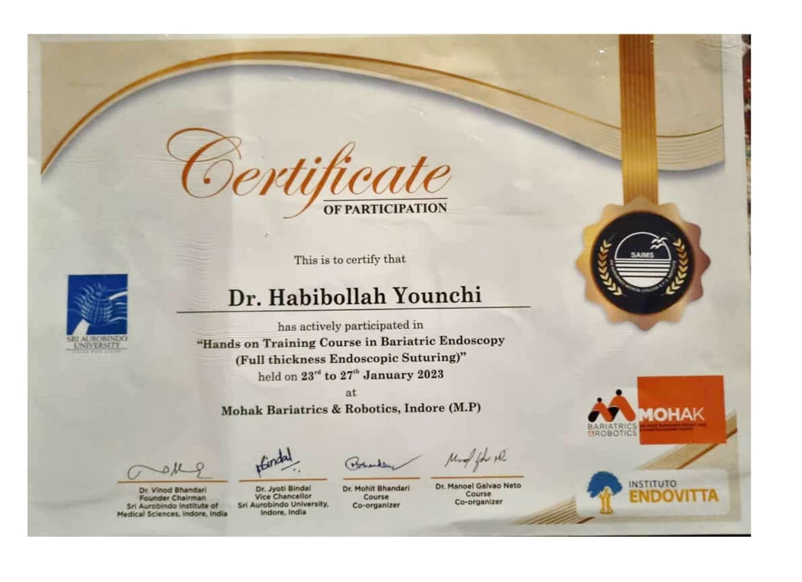Dr. Younchi has completed rigorous academic and professional training at Qazvin University of Medical Sciences and several international institutes. His educational journey reflects deep commitment to lifelong learning, clinical excellence, and advancement of modern endoscopic technologies through specialized courses in Italy and India.